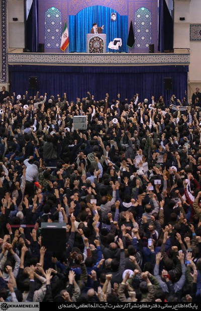 إعلام العدو یتّهم إیران بإثارة حروبٍ بالنیابة، و هذه فریةٌ کبرى، فشعوب المنطقة قد استیقظت، و قدرةُ إیران فی مقاومتها الطّویلة أمام خُبثِ أمریکا قد ترکت أثرها فی الجوّ العام للمنطقة و فی معنویات الشعوب. مصیر المنطقة یتوقّف على التّحرّرِ من الهیمنة الاسکباریة الأمریکیة وتحریر فلسطین من سیطرة الصهاینةِ الأجانب.