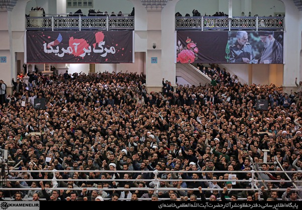 فی هذه الأیام استشهد قائدٌ إیرانی کبیرٌ و شجاعٌ و مجاهدٌ عراقی طافحٌ بروح التضحیة و الإخلاص بأذرعٍ عسکریة أمریکیة و بأمر الرّئیس الإرهابی الأمریکی. هذه الجریمة لم تُرتکب فی میدان المواجهة، بل جرت بصورة جبانة لئیمة.